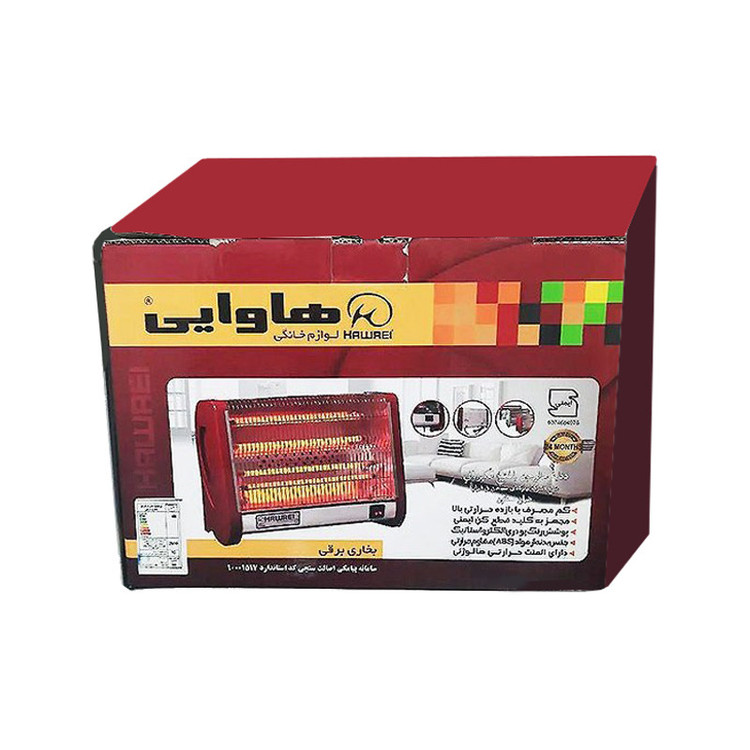 بخاری برقی هاوایی مدل ۲۰۰۱ با توان گرمایشی ۱۶۰۰ وات و ولتاژ ورودی ۲۲۰ ولت طراحی شده و دارای چهار عنصر گرمایی هالوژنی میباشد که گرمایی سریع و یکنواخت را به محیط منتقل میکند. این نوع المنتها علاوه بر تولید گرمای مؤثر، دوام بالا و مصرف انرژی بهینهای نیز ارائه میدهند؛ مصرف انرژی این دستگاه گرید A است، که نشاندهنده بازده حرارتی خوب و مصرف مناسب برق است. از نظر ایمنی، این بخاری بدون فن مجهز به یک کلید قطعکن ایمنی (سنسور واژگونی) است که در صورت افتادن و واژگون شدن دستگاه، بهصورت خودکار آن را خاموش میکند. یکی از مهمترین ویژگیهای این محصول برای محیطهای پرخطر مانند کارگاهها، مغازهها یا اتاقهایی با رفت و آمد بالا همچنین بدنه آن از ترکیب پلاستیک ABS نسوز و پوشش پودری الکترواستاتیک ساخته شده که مقاومت خوبی در برابر حرارت دارد. همچنین سیمهای داخلی آن از نوع عایق و نسوز هستند .