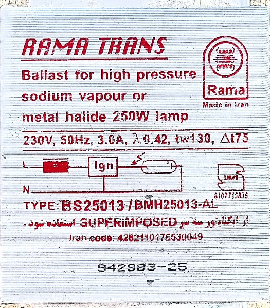 ترانس ۲۵۰ وات راما بخار سدیم