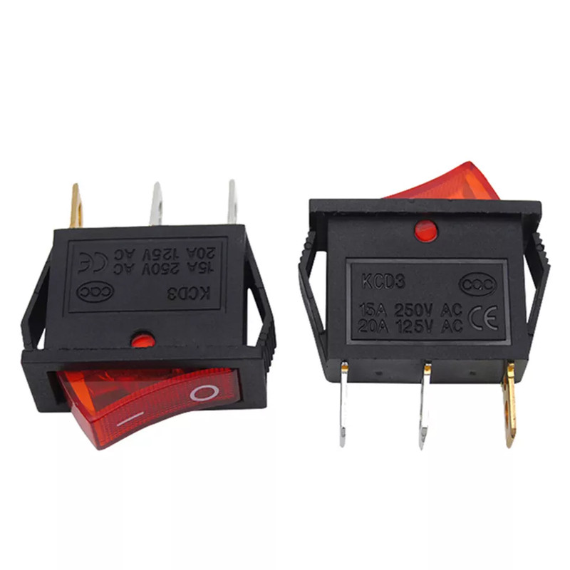 قابلیت هاکلید راکر باریک 3 پایه چراغ دار قرمز بسته 2 عددی