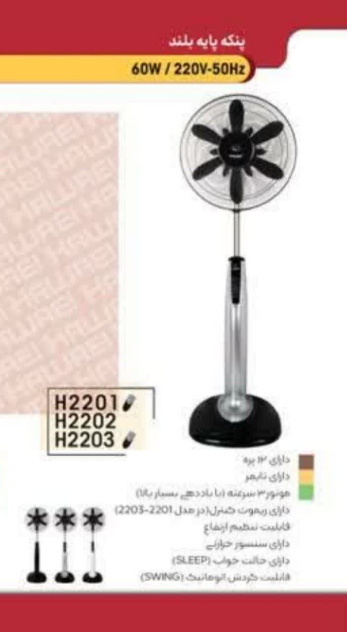 پنکه ایستاده ۱۲ پره پایه بلند هاوایی مدل ۲۲۰۱